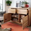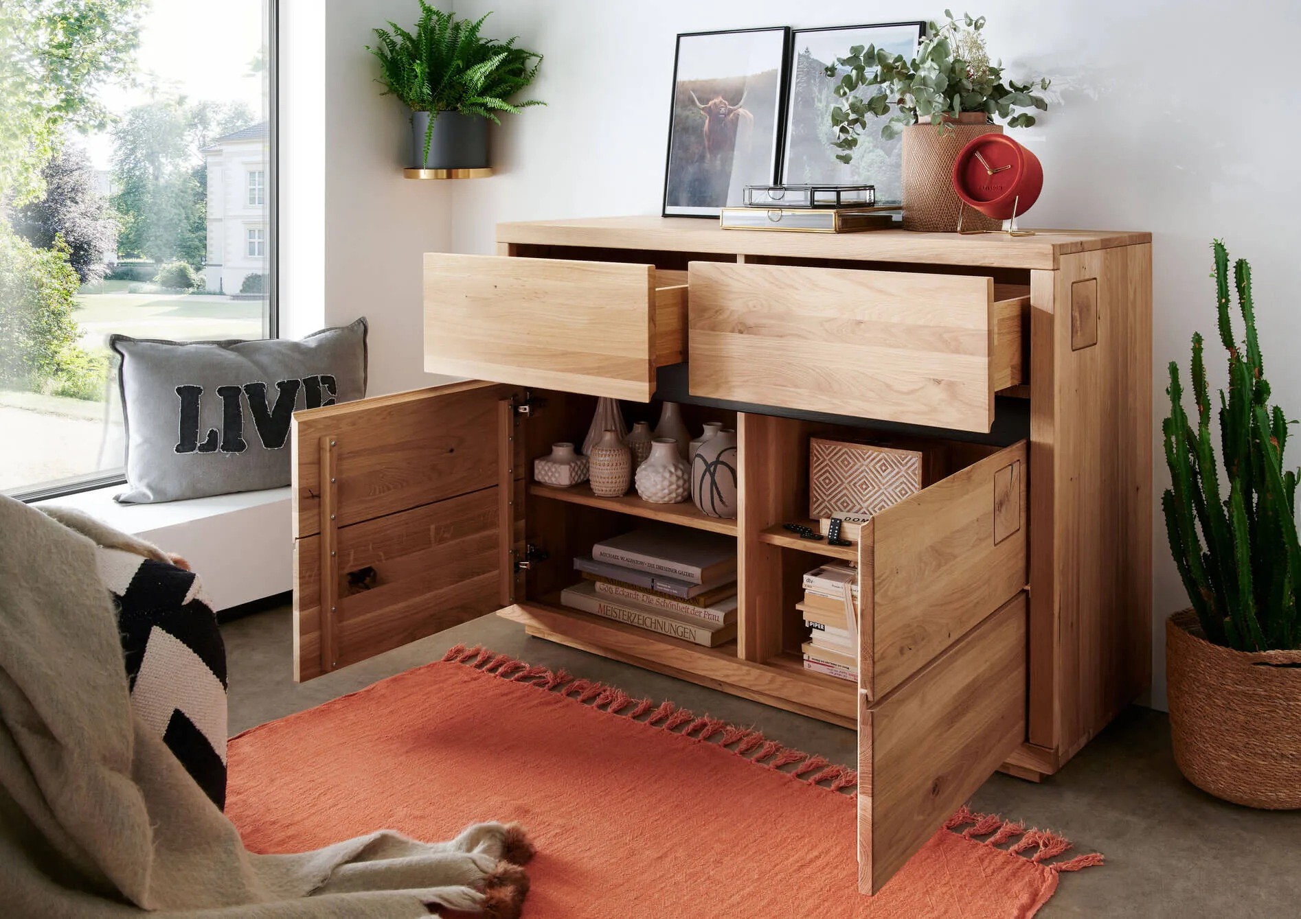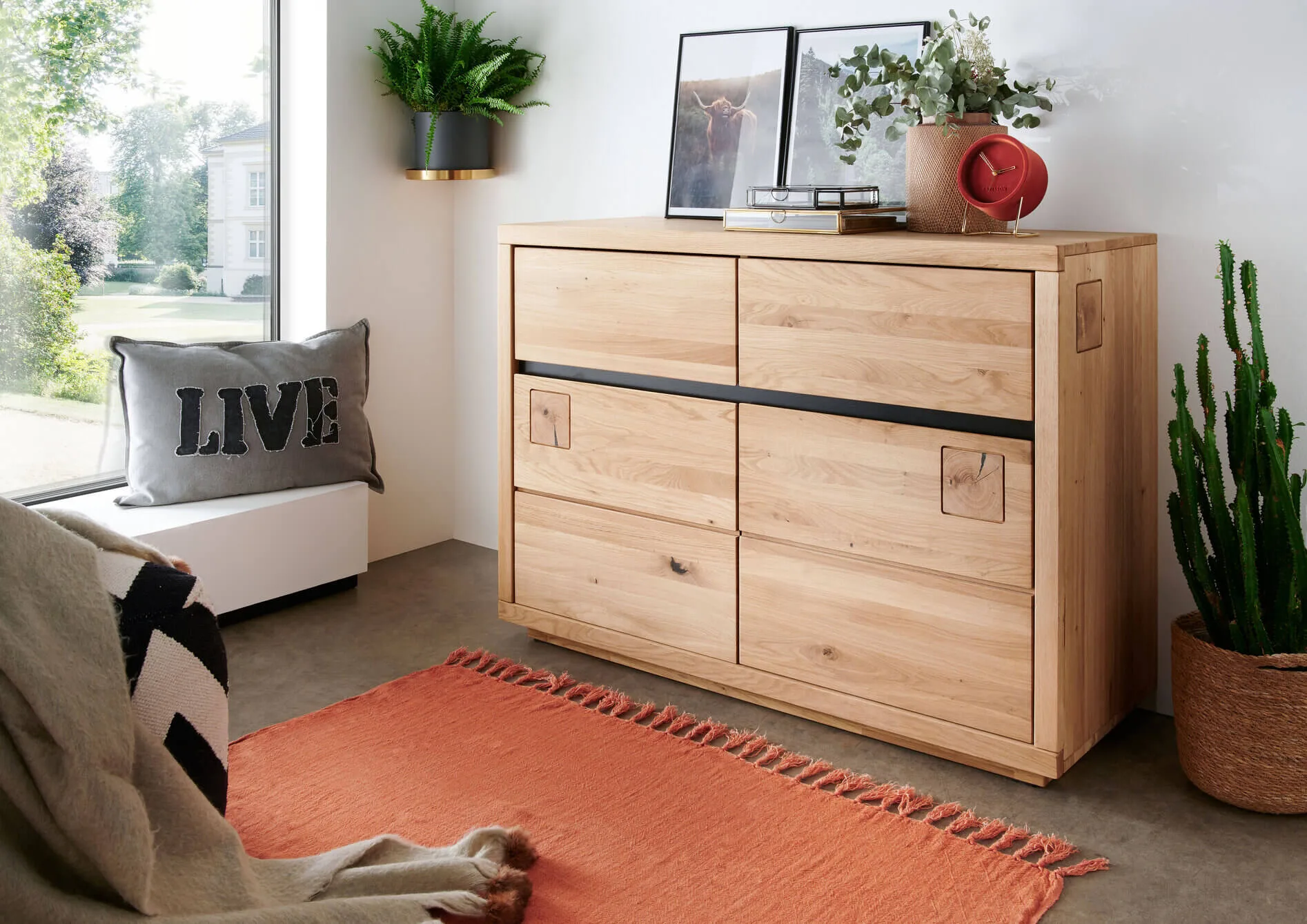 La Commode I WZ-0159 en chêne massif est fabriquée à partir de chêne massif découpé dans le sens de la longueur. Le matériau est protégé par une huile qui met en valeur la couleur naturelle du bois. L’incrustation noire, les petits carrés visibles sur les façades et les nœuds apportent à la commode un design original. Ce meuble trouvera son utilité dans toutes les pièces.