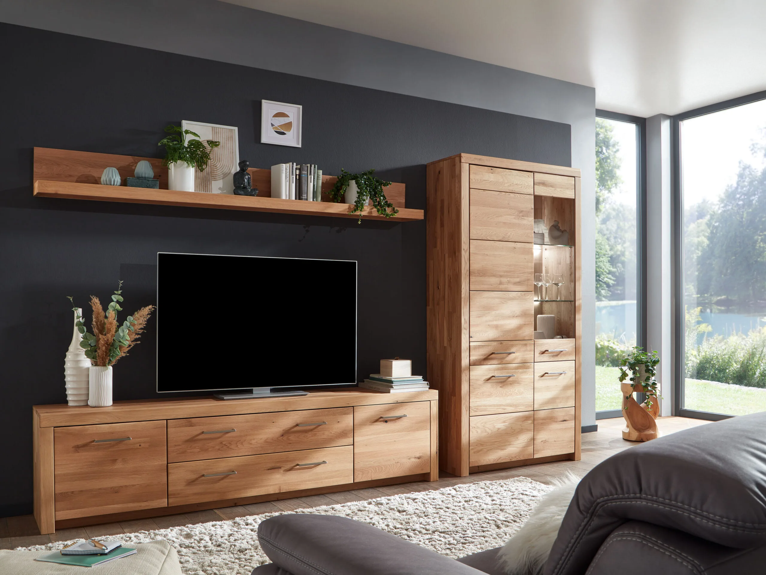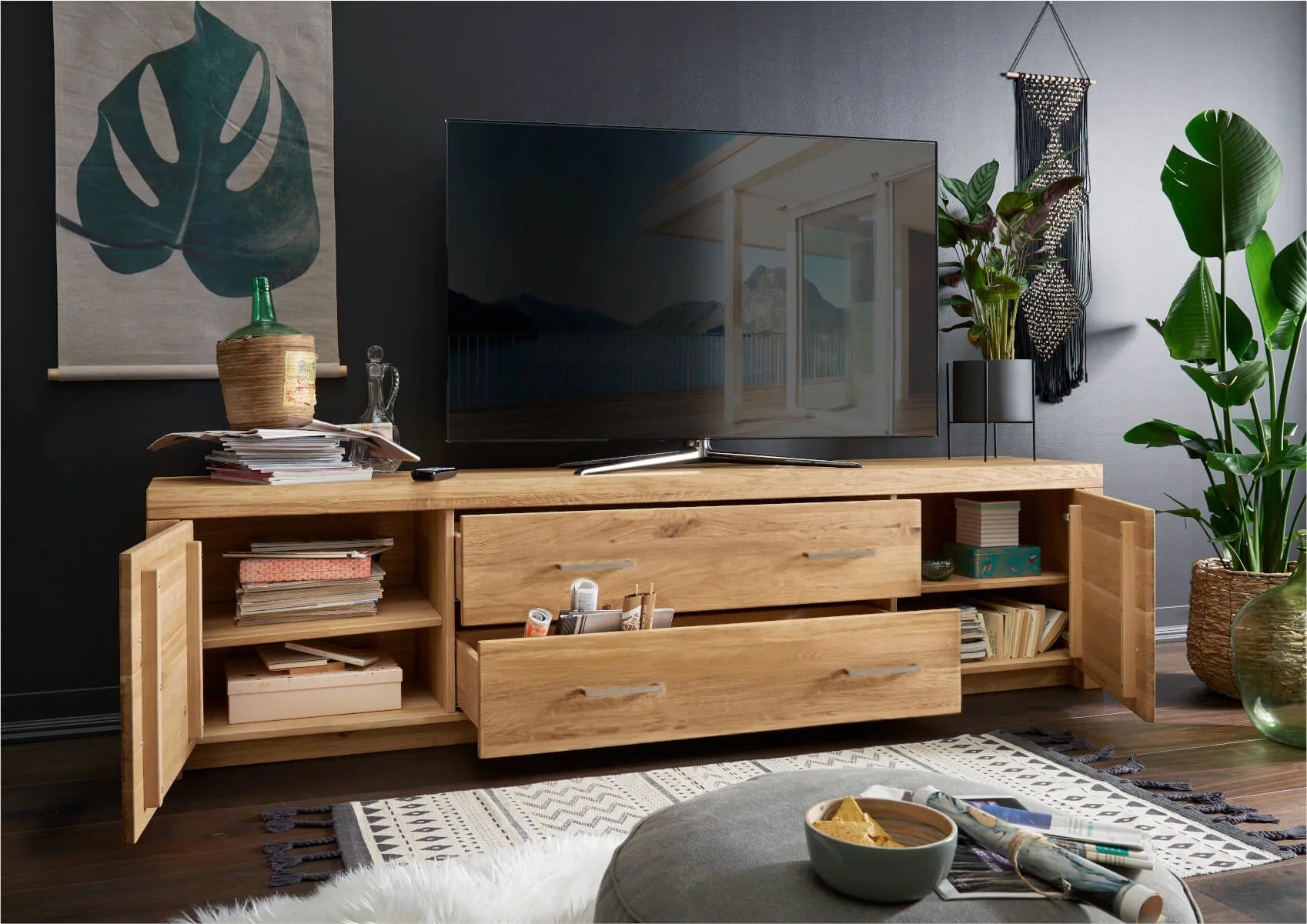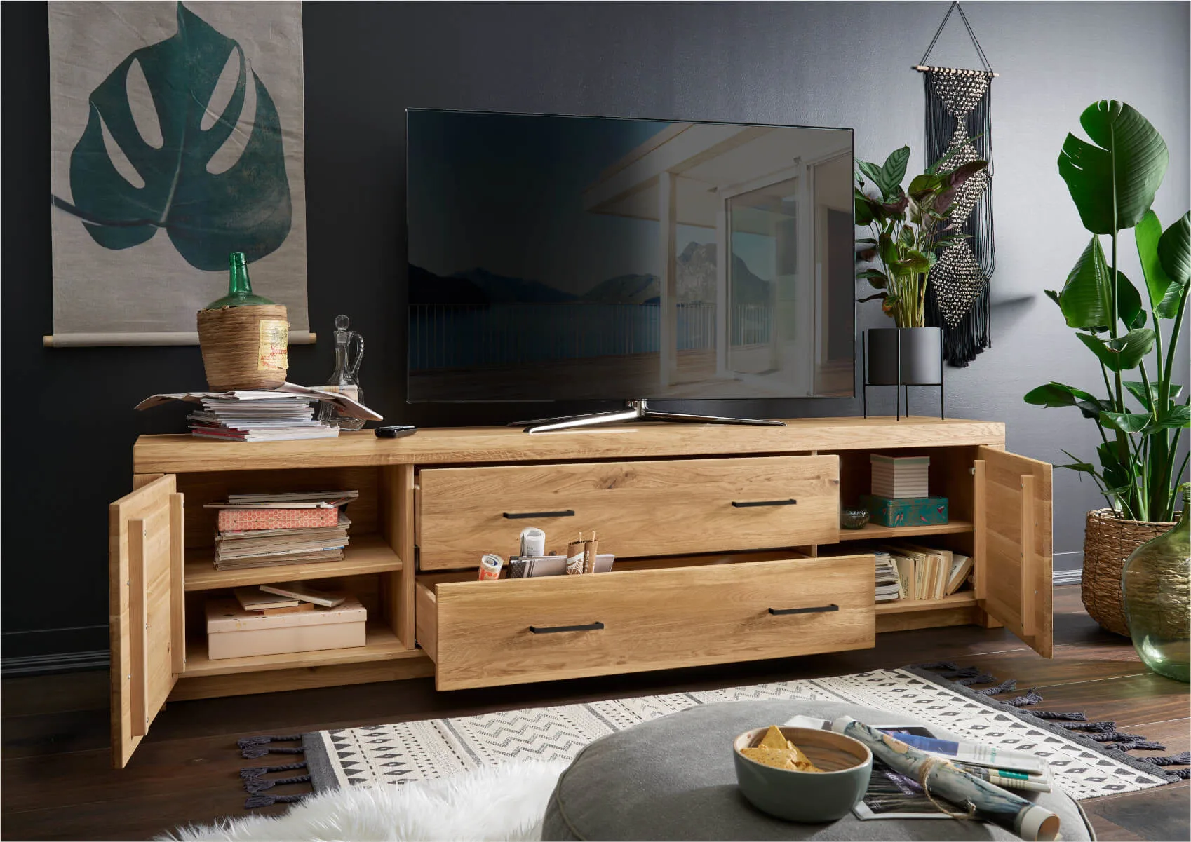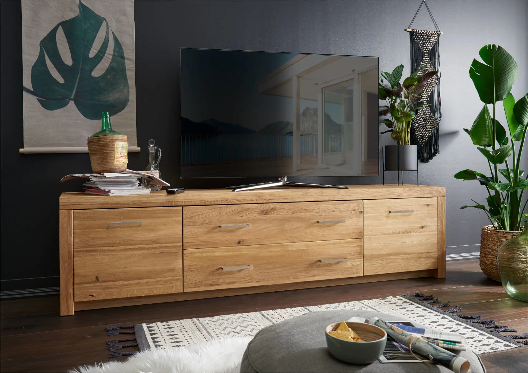 Le meuble TV III WZ-0169  en chêne massif  au design élégant, est un mobilier qui allie style raffiné et fonctionnalité. Il dispose d’armoires et de tiroirs spacieux permettant de ranger divers objets. Le dessus offre un espace idéal pour la télévision. Ce meuble est un choix incontournable pour le salon ou la chambre.