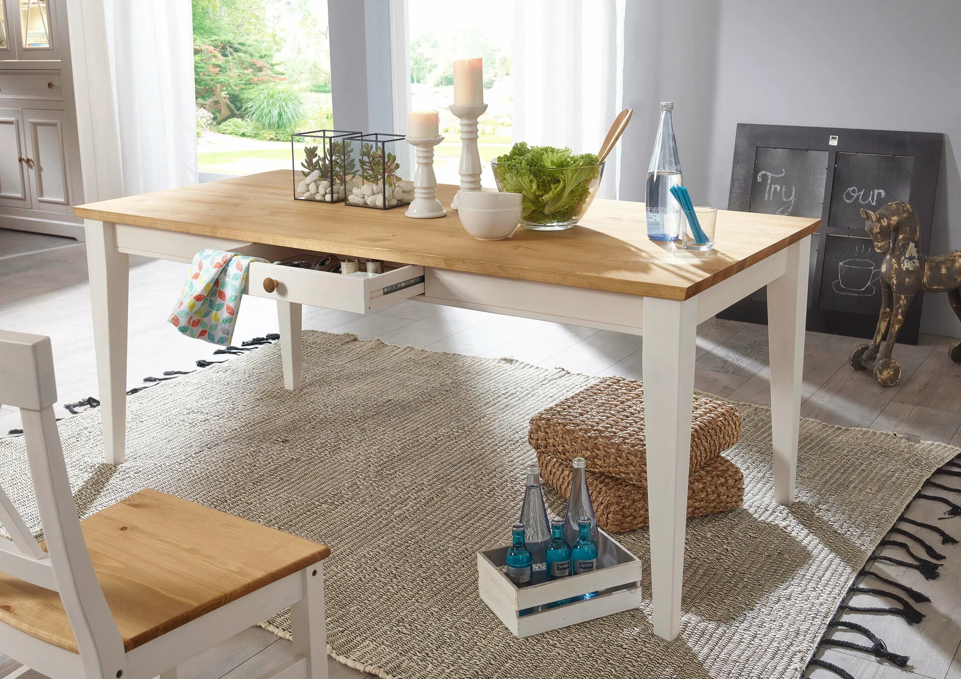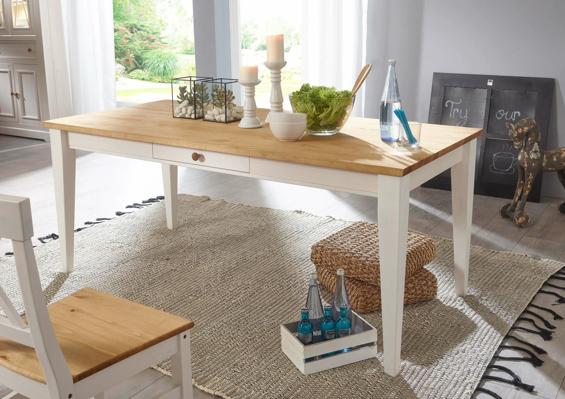 Table 180×90 WZ-0133 Pin Blanc Ciré