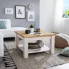 La table basse I est très prisée pour le salon grâce à sa solidité et son esthétique soignée. L’étagère située sous le plateau offre un espace pratique pour ranger la télécommande et les journaux. Avec sa structure robuste et ses teintes claires, cette table ajoute luminosité et fonctionnalité à l’espace de vie.