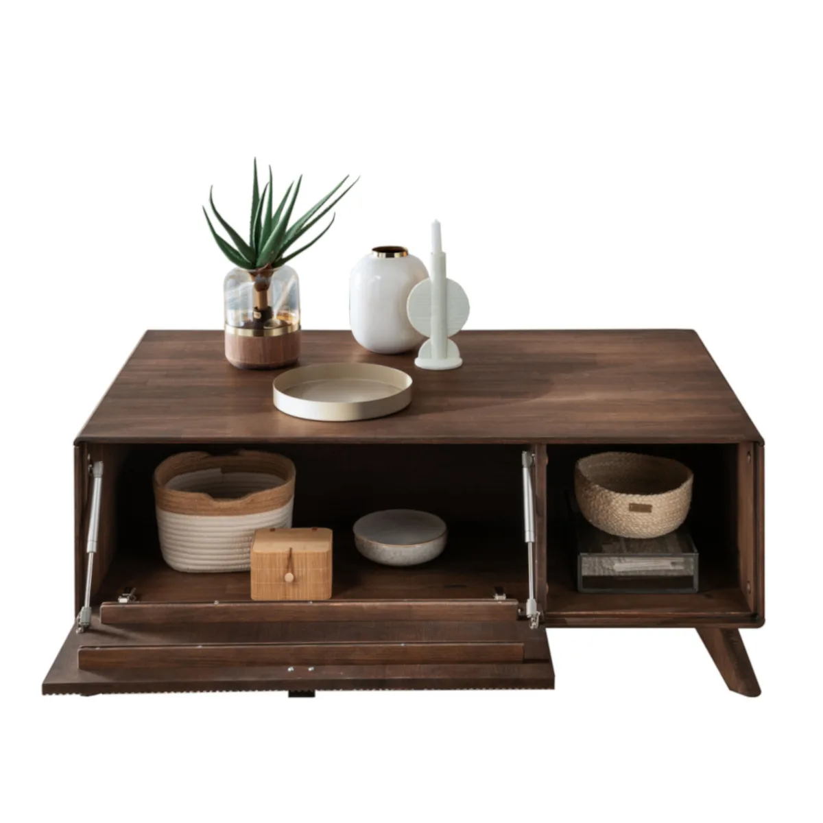 La table basse II avec étagères et armoire en bois de hêtre est un meuble alliant fonctionnalité et esthétique. Le plateau principal permet de poser une tasse, une assiette, tandis que les étagères et la l’armoire offrent des espaces de rangement pour divers objets. L’armoire permet de dissimuler des objets que vous préférez garder hors de la vue des invités.
