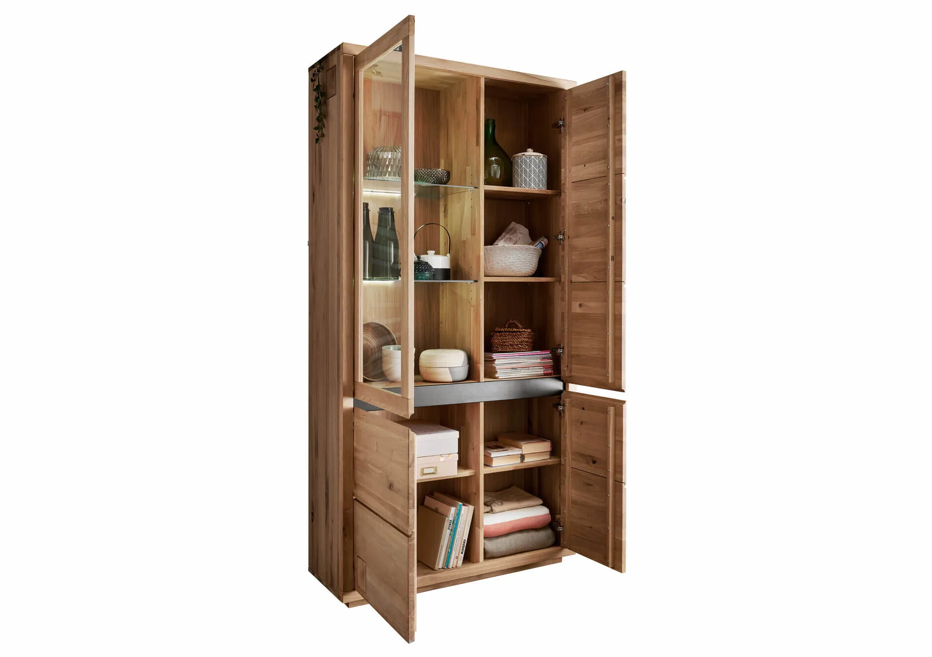La Vitrine II-L WZ-0159 en chêne massif offre un espace généreux pour de nombreux objets tout en permettant d’exposer vos décorations. Fabriquée en chêne massif coupé dans le sens de la longueur, elle se distingue par un insert noir en chêne peint. Ce meuble, d’une solidité et d’une durabilité remarquables, ravira votre regard et embellira votre intérieur pendant de nombreuses années.