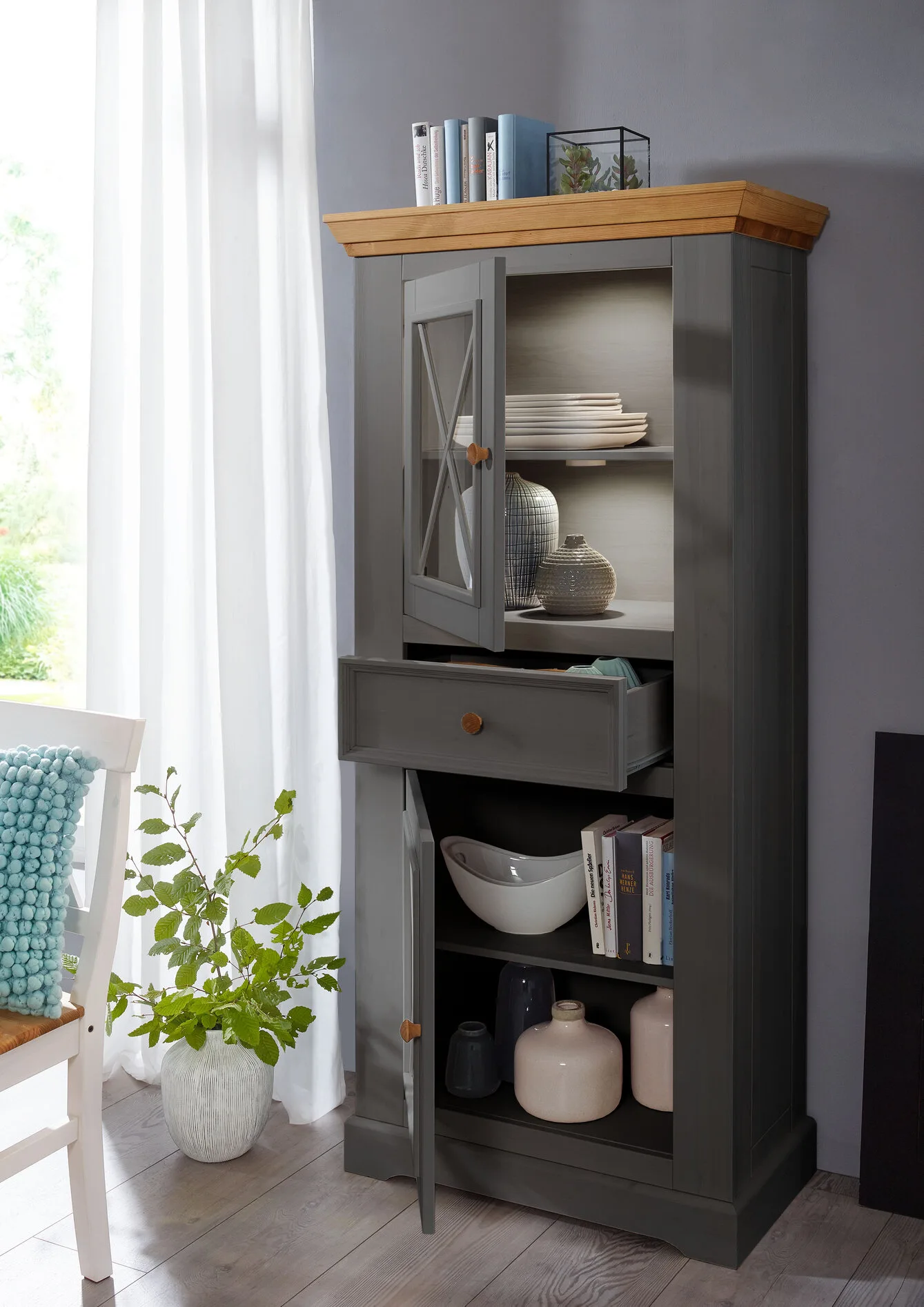 • Pin massif ciré gris